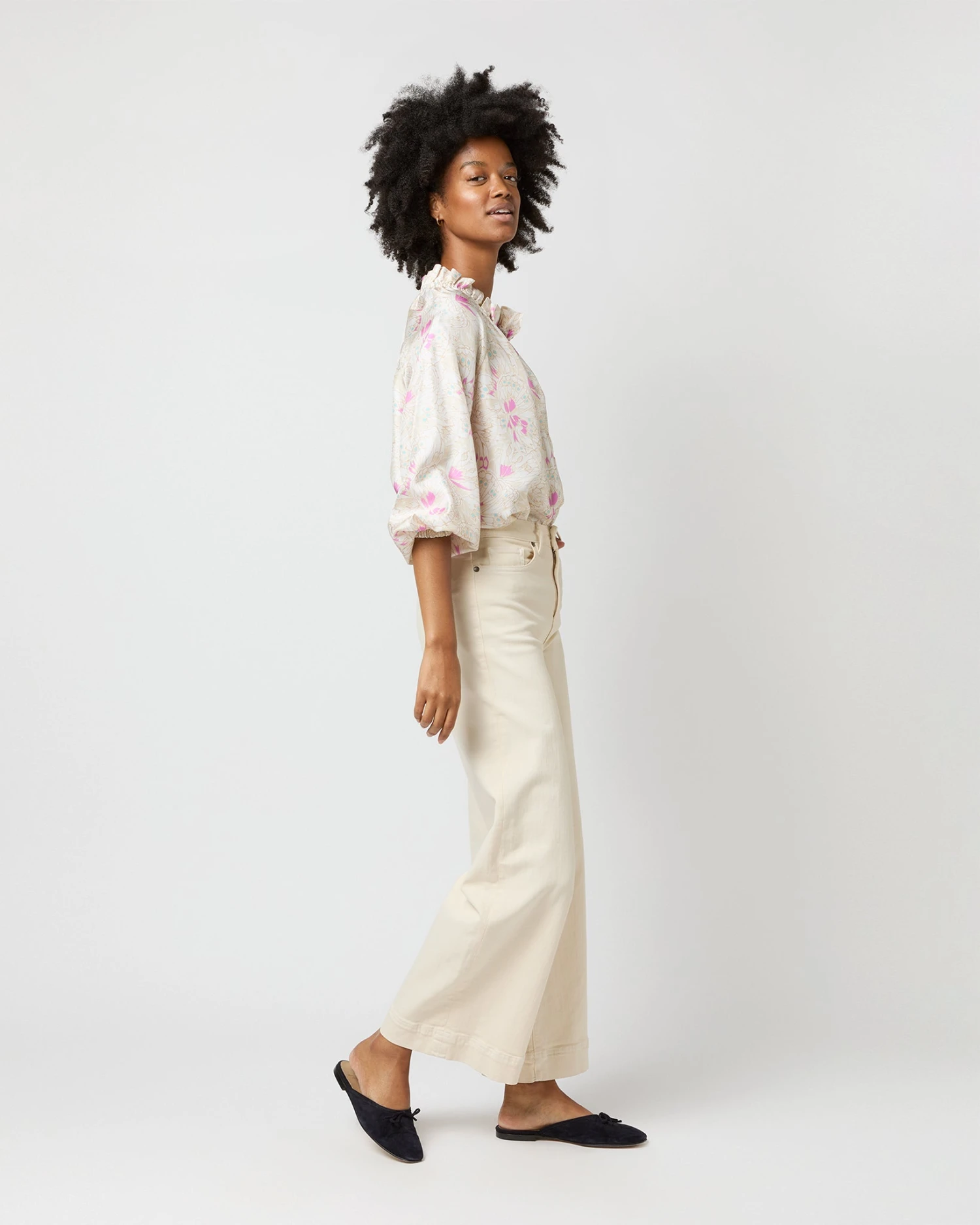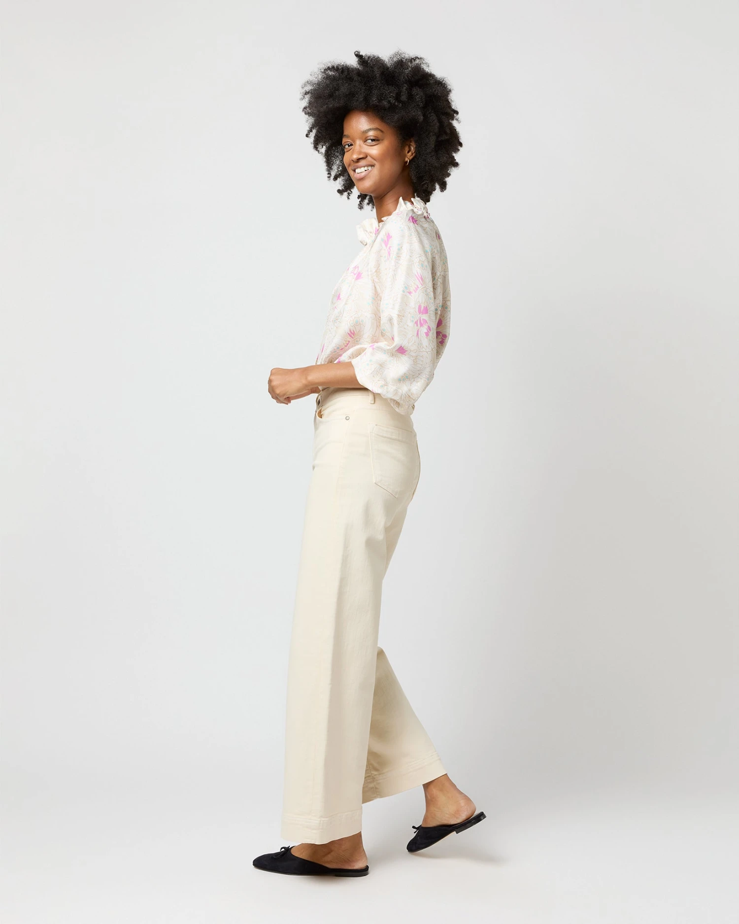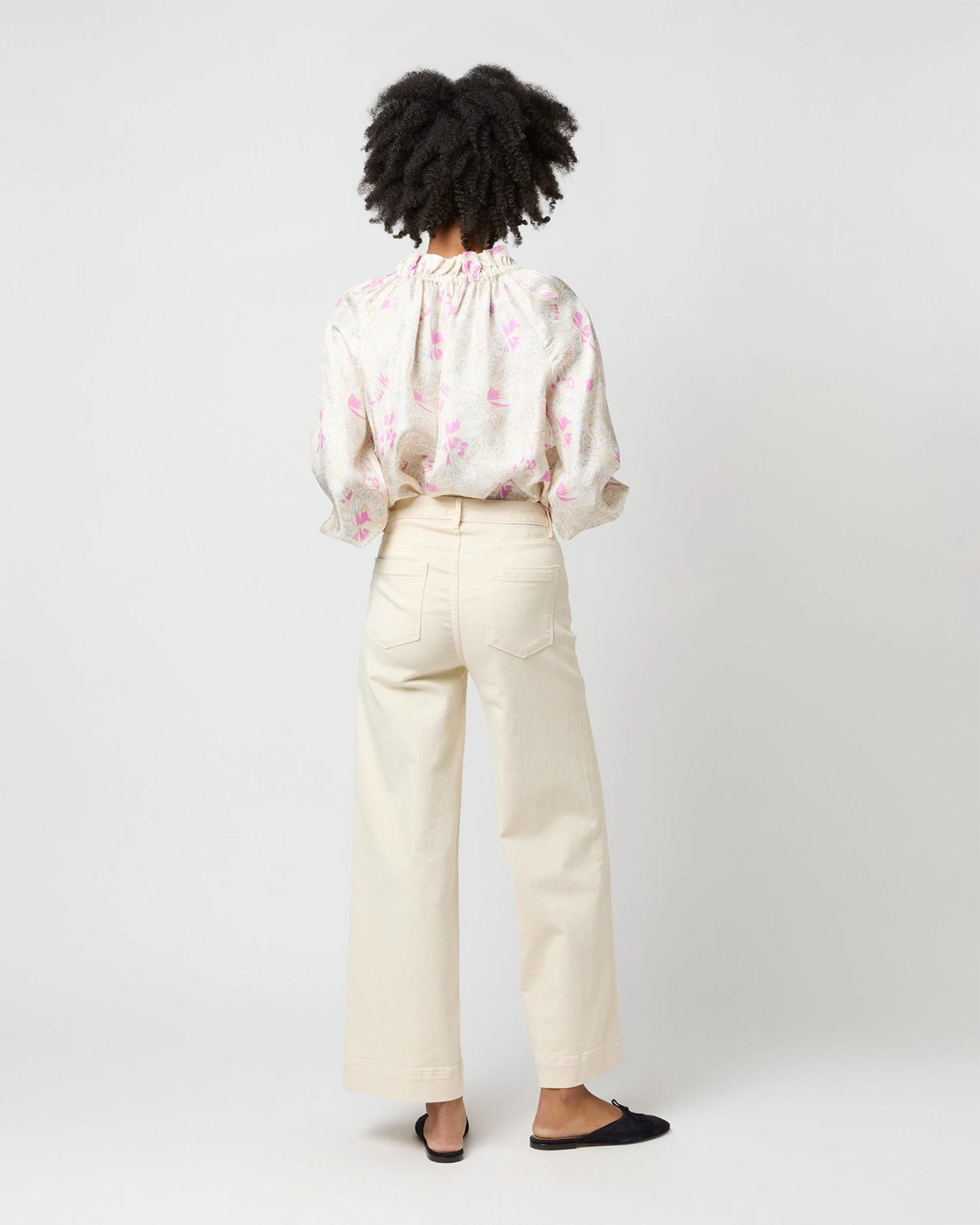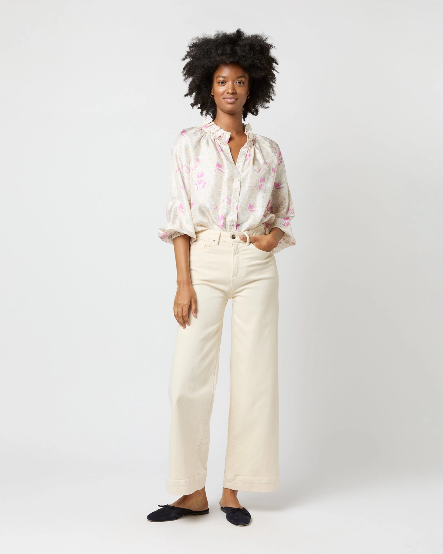 Very much a twist on a βbutton-up blouse,β this is a slightly less-sweet version of our hit Kamille shape. It’s got covered buttons down the front, plus the same elasticated neckline and wrists as the original for an easy, adjustable fit. This one’s made of silk twill from Italy with the prettiest, subtlest butterfly print.