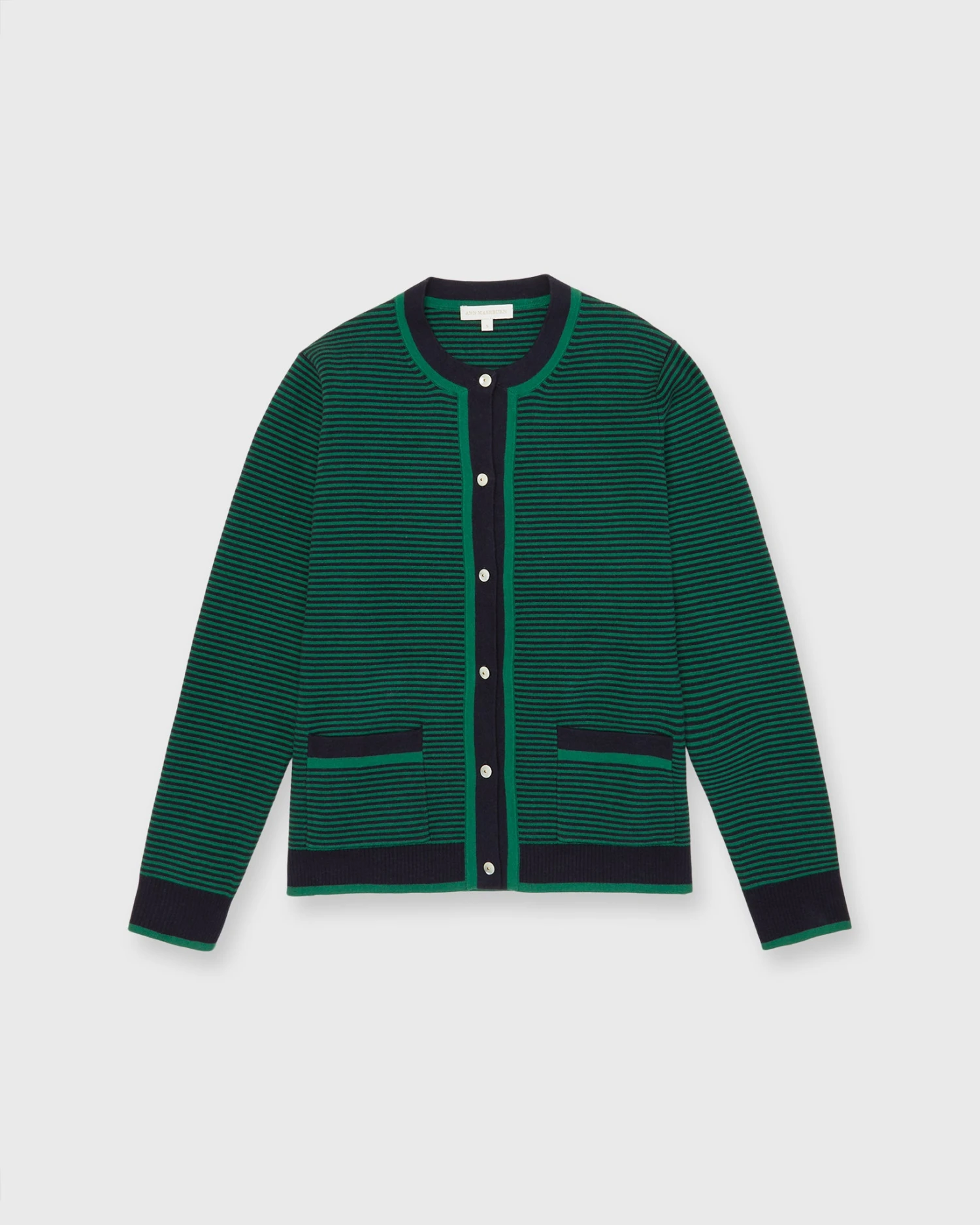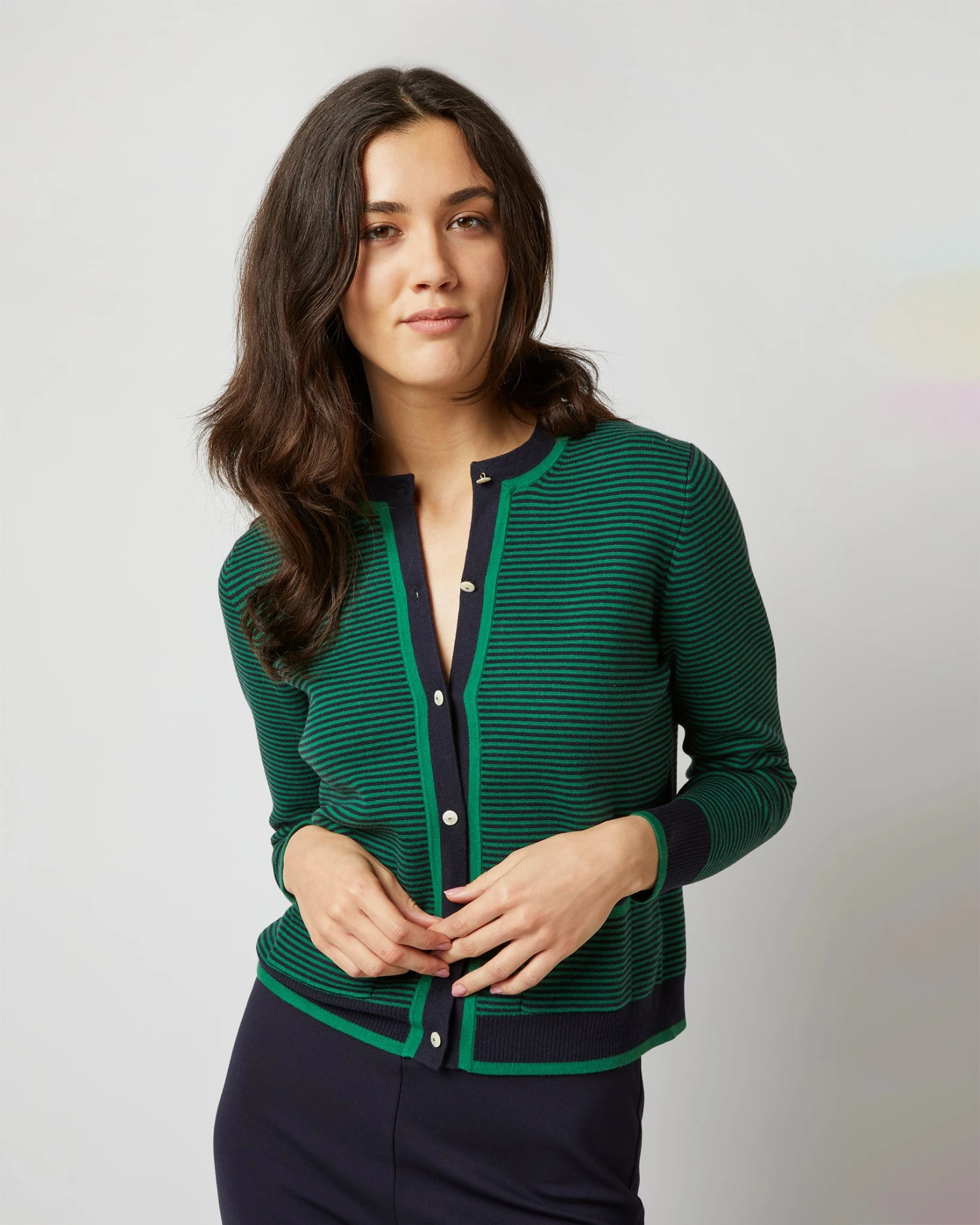 Katie Cardigan In Green/Navy Cotton/Cashmere