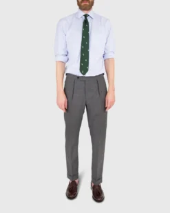Pleated Dress Trouser In Mid-Grey High-Twist