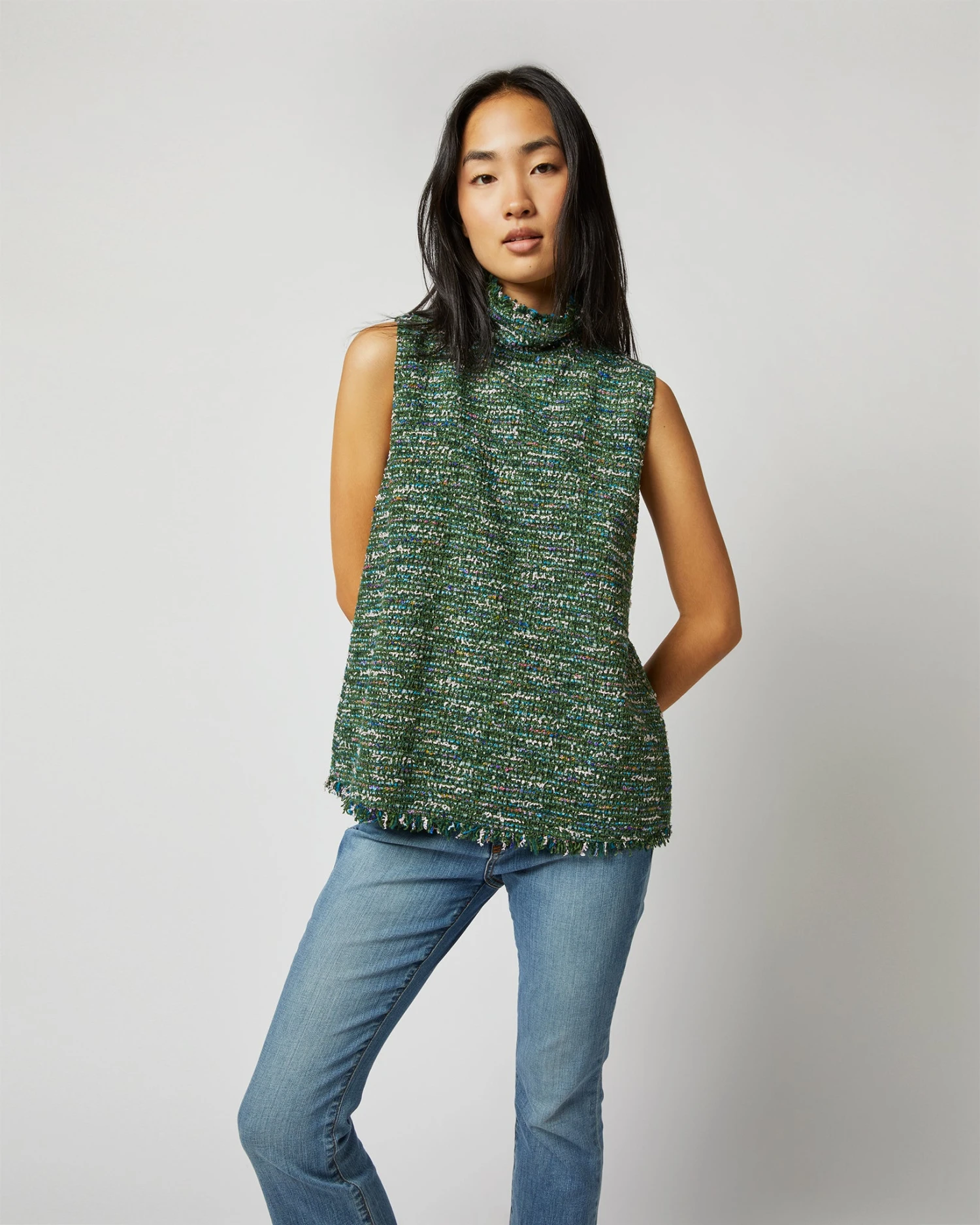 Sleeveless Ana Fringe Top In Green/Pink Tweed