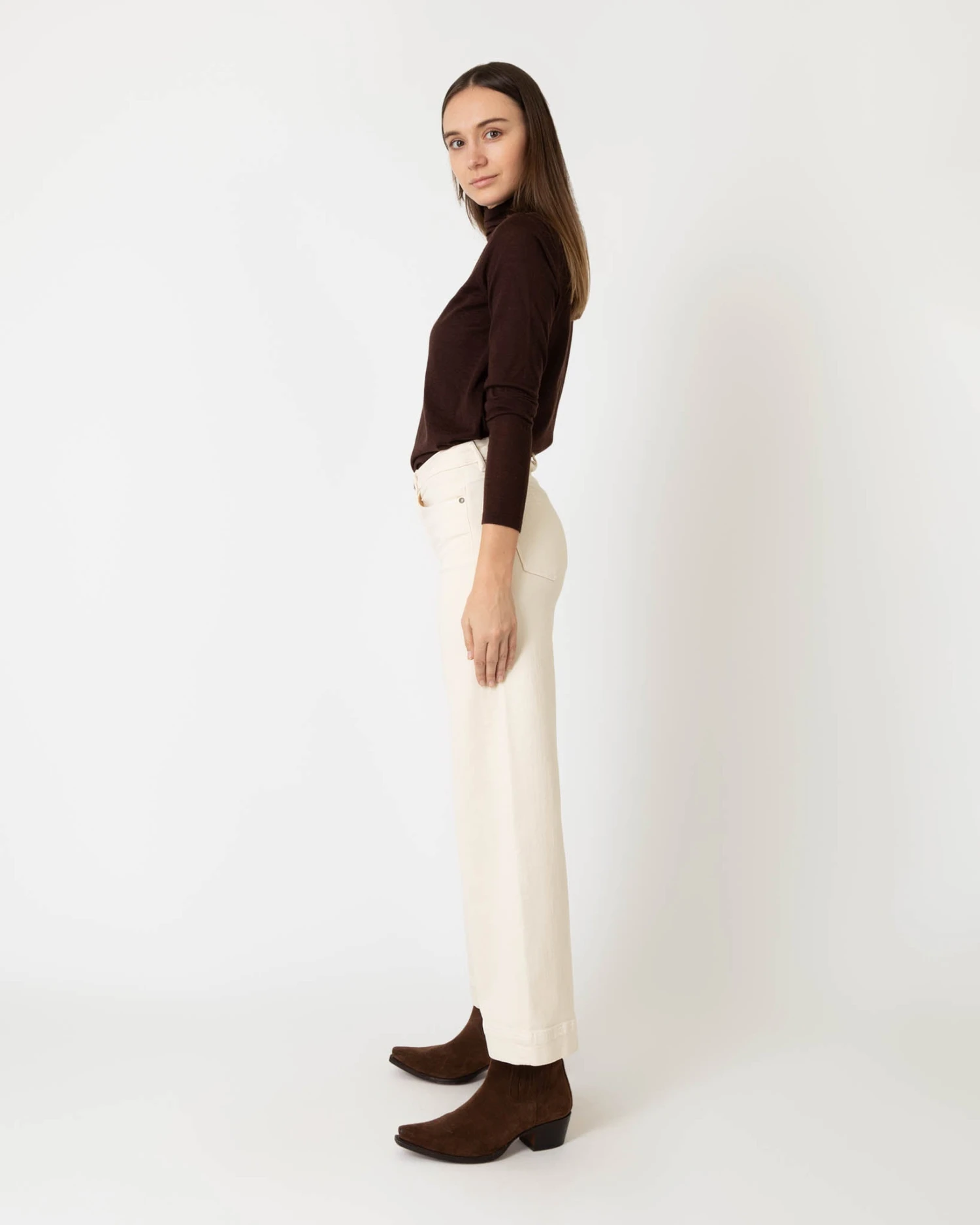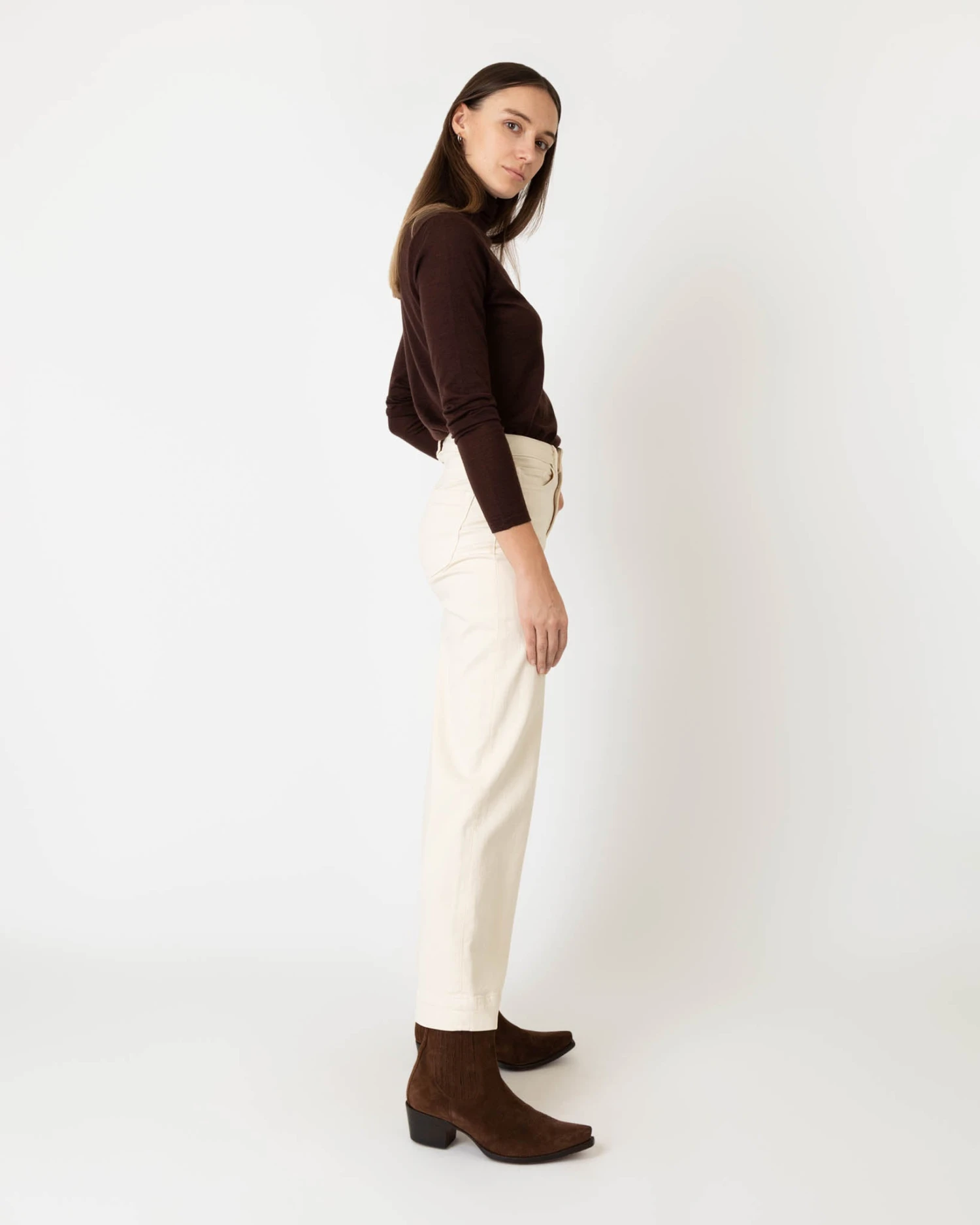 A good turtleneck is the ultimate wardrobe building block in colder months. This one is actually a funnel-neck, which means there’s no neck seam at all. While it’s our go-to base layer in the cooler half of the year, it’s made up in a cashmere that’s so fine you can practically wear it year-round. The light weight and low profile also make it an excellent layering piece — not too bulky under dresses and shirts, but also very chic worn on its own.
