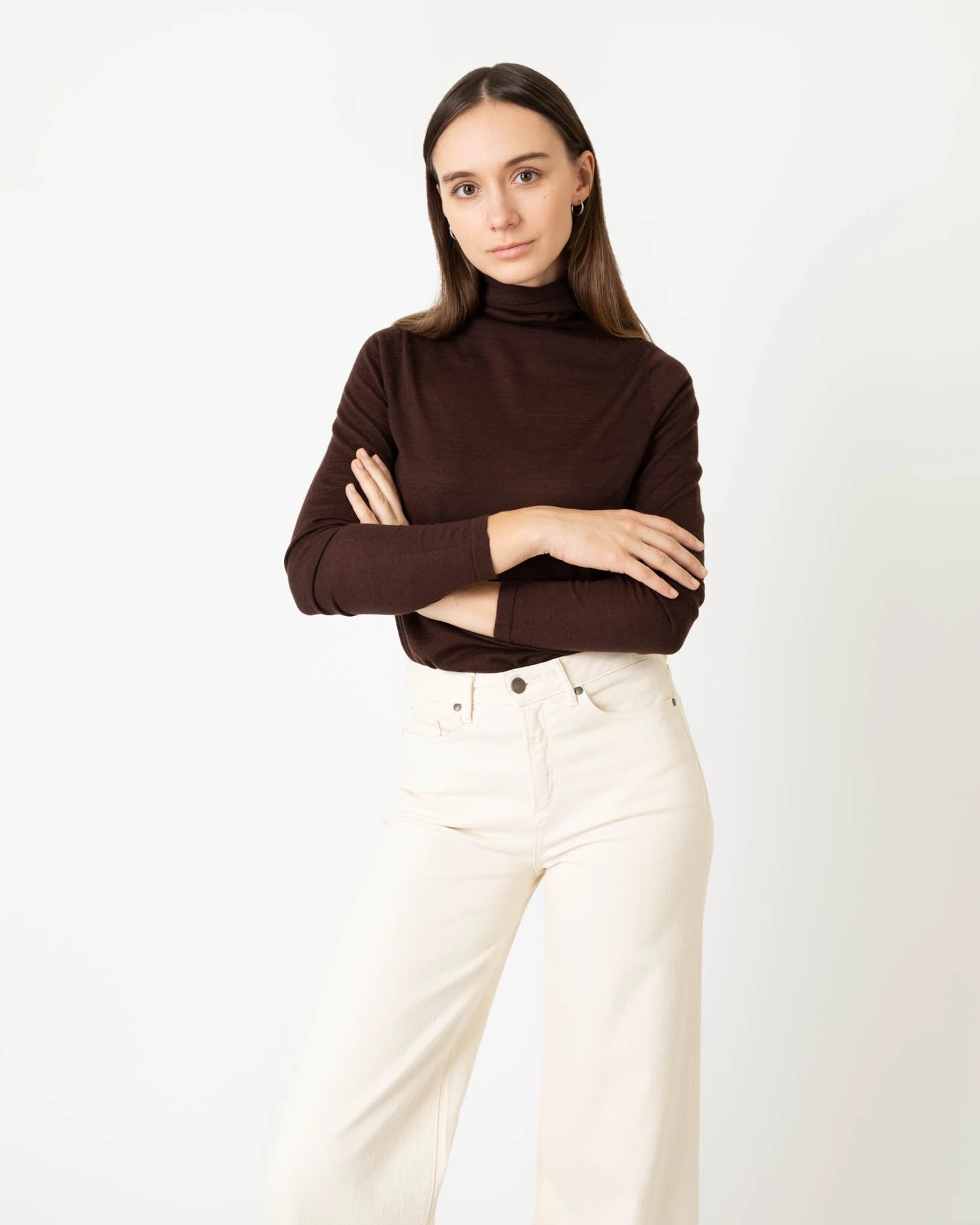 Superfine Funnel-Neck Sweater In Chocolate Cashmere