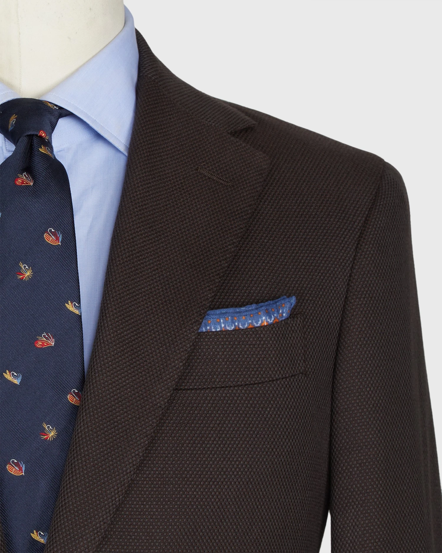 We spent years sourcing the right mill to recreate the fabric formerly known as leno weave, a special cotton/wool hopsack with a gutsy texture and a serious fanbase. (And while we were at it, we gave it a brand-new name: Monk’s Cloth.) Itβs woven just for us in Portugal and it makes for a real 7-days-a-week kind of jacket. Especially in chocolate brown. The No. 2 make is fully canvassed, with a lightweight, single-layer canvas that’ll mold and meld to your body, but in a sportier, easier way than our more structured Nos. 3, 4, or 5. And our Virgil model has a natural shoulder, a 3-roll-2 lapel, and a shorter body with no front darts at all. Think old-school ‘sack jacket,’ but sexier. It’s got a slightly more American feel than the Kincaid or the Landry, but just like all of our tailored clothing, it’s designed to take you from Mississippi to Manhattan to Milan without looking or feeling out of place.